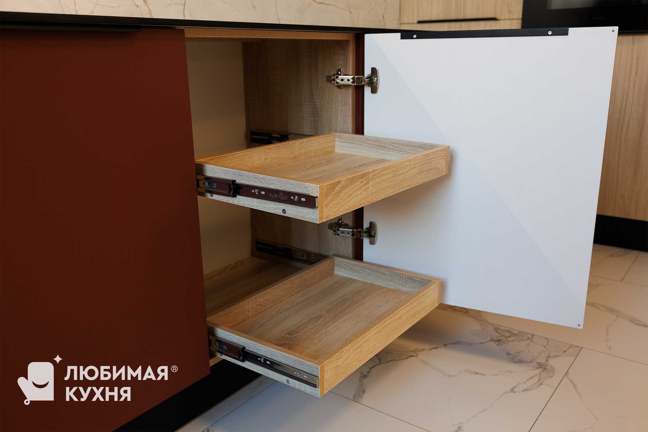 фасады ТРП Стронг кампари, индивидуальная фрезеровка, пеналы ЛДСП H1367 ST40 Дуб Каселла натуральный светлый